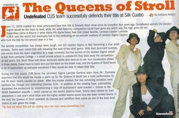 Strolling is another form of expression that is more rhythmic and dance based. Strolling consists of members in a single file line, performing a routine in unison, in a forward motion to music (usually remixed with different songs). Chi Upsilon Sigma ® has been at the forefront of revolutionizing the Step and Stroll genres for Latino Greek Letter Organizations. We were the FIRST to have a “Stroll Dynasty”, and have continued to wow crowds with our organic style ever since. Stepping has always been a mainstay in our Sorority’s culture, and our no-frills approach has made us stand out and continue to advance in major competitions nationwide.